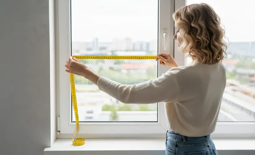 Measure the width of the glass, which is the internal distance between the window frames. After taking this measurement, add 4–5 cm to the result. This ensures the blind will fully cover the width of the window, and the fabric won’t interfere with the window handles. You can safely provide this calculated size when placing your order.
