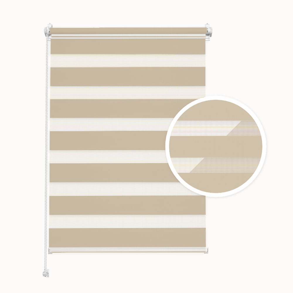 Day and Night Blind. Color: Sand. No-drill installation. Custom-made. Width: 30–150 cm. Height: 120, 150 or 220 cm. Darkening: approx. 50%.