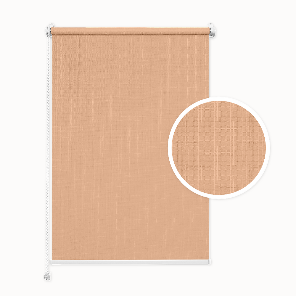 Standard (classic) roller blind. Color: Peach. Tool-free installation. Made to measure. Width: 30–150 cm. Height: 150 or 220 cm. Light filtering: approx. 50%.